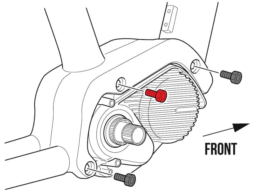 Röd bult på bilden nedan indikerar var den grundare bulten ska monteras