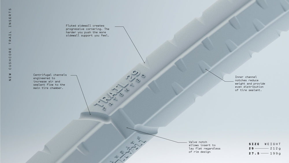 Precis som alla CushCore däckinsatser, TRAIL absorberar stötar och vibrationer, förbättrar kurvtagning och förebygger punkteringar och fälgskador. Vilket ger dig självförtroende att cykla på din bästa nivå.