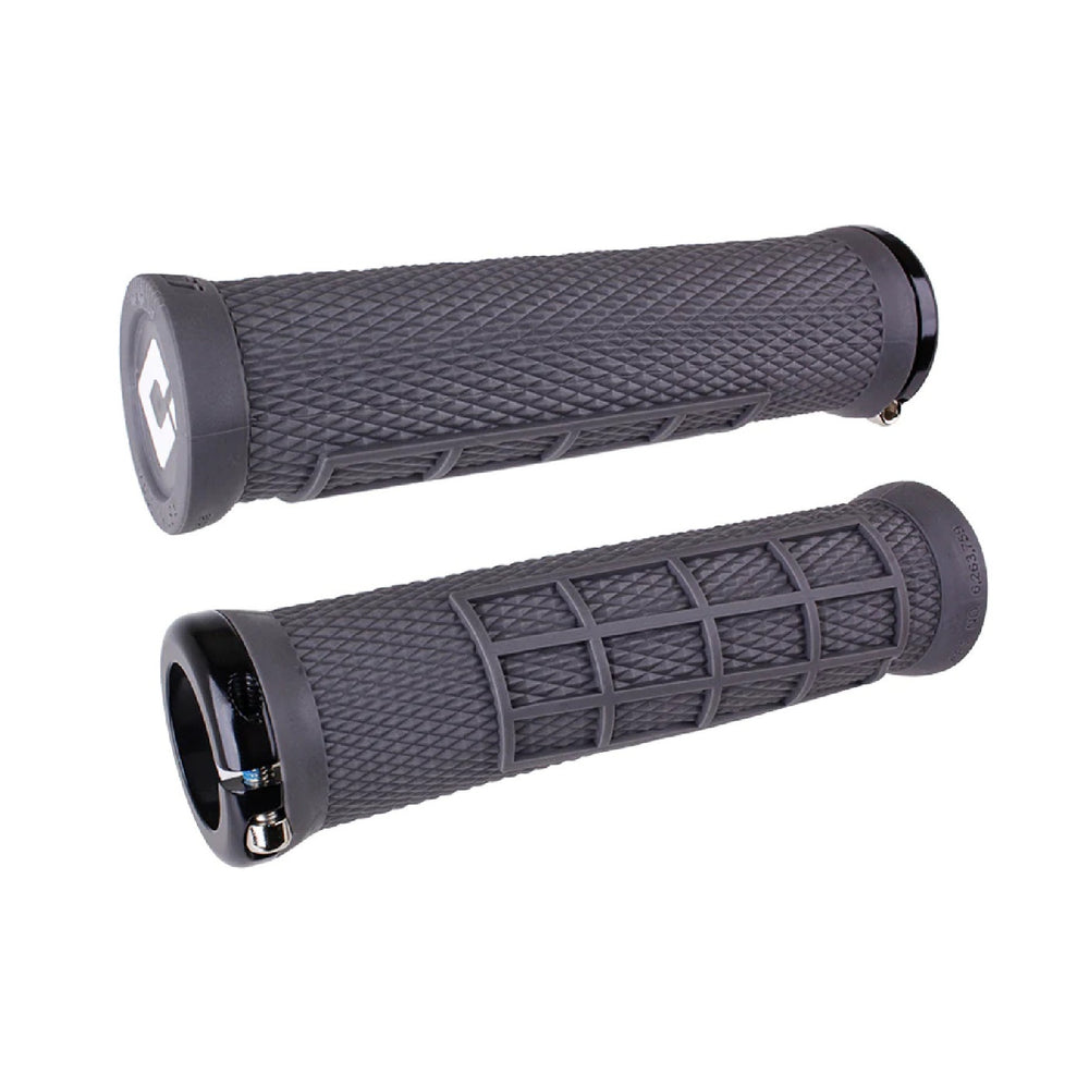 Den ensidiga klämringen av Elite Flow Lock-On-greppen säkerställer en mer praktisk design av greppytan och mer komfort i den yttre änden av greppen. Förstärkta ändstycken på styret av robust kompositmaterial minskar slitaget på handtagen och förlänger därmed deras livslängd. ODI:s patenterade Soft Compound-blandning ger utmärkt stötdämpning utan att kompromissa med hållbarheten. Handtagens half-waffle struktur ger en förstoring av ytan och därmed ytterligare grepp.